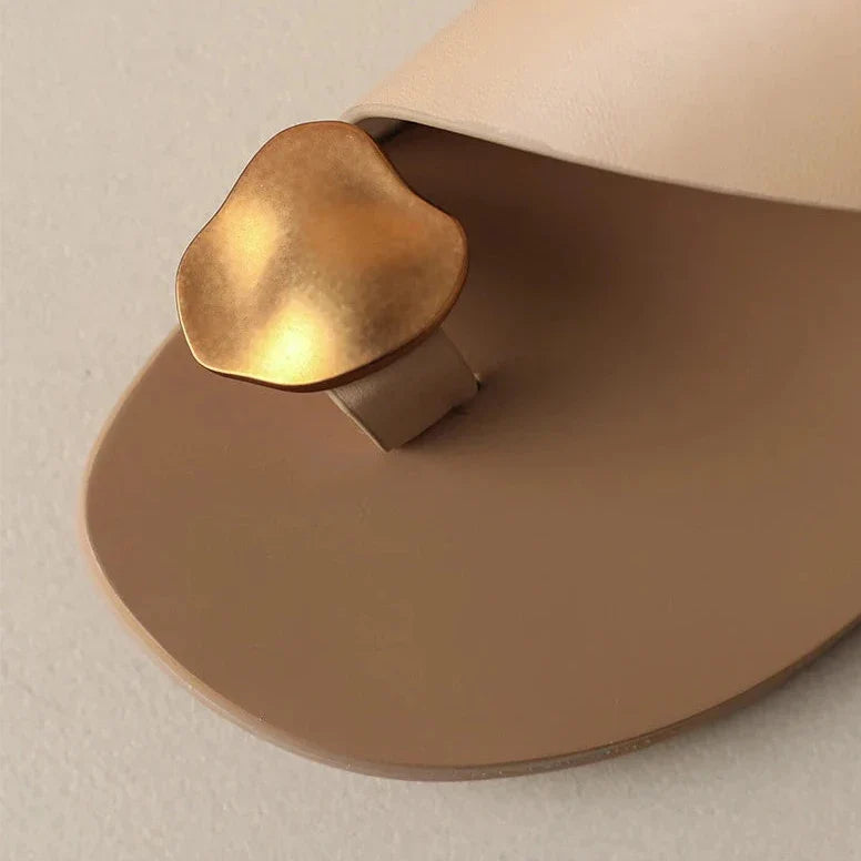 Minimalist flats featuring a delicate metallic toe ring for a luxurious and elegant look. Add a dose of glamour to your evening look with these flats. Pair them with a satin slip dress, a metallic clutch, and some dainty jewelry and you are ready for the evening.