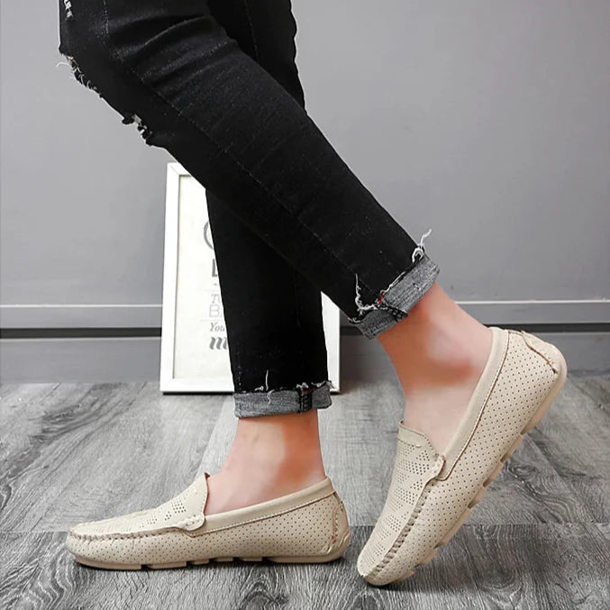 An everyday classic elevated by perforated genuine leather, this refined loafer delivers a lightweight and breathable build, set on a flexible, grippy rubber sole, perfect from office hours to evening dinners.