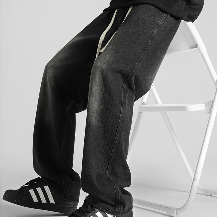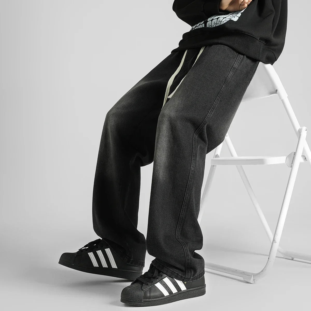 Designed with a relaxed, wide-leg cut and smooth feel, these denim jeans offer breathable comfort and easy movement, finished with a drawstring waistband, great for everyday wear.
