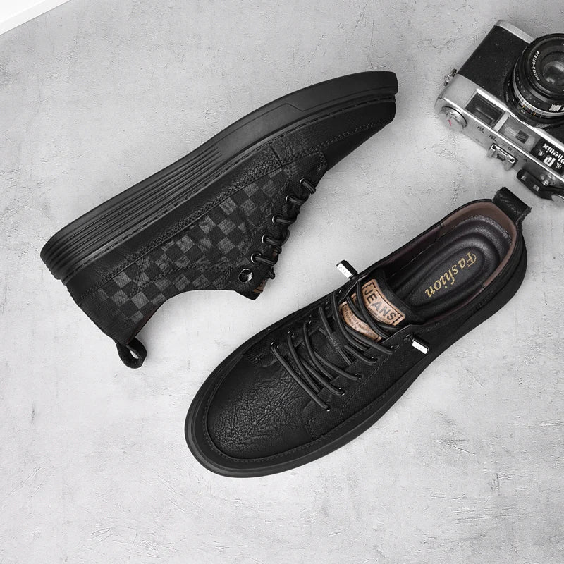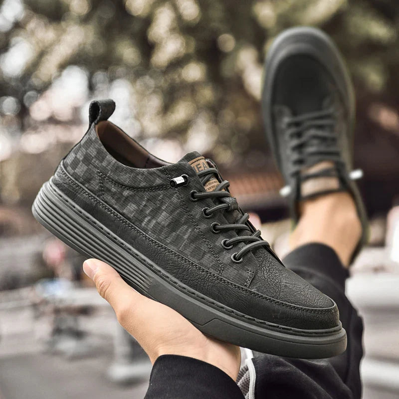 Genuine leather with a matte finish refines this sleek sneaker that brings uniquely patterned side panels and elevated comfort while set on a sculpted sole for a city-ready look.