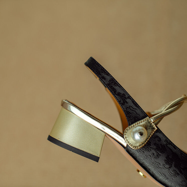 A perfectly squared-off toe and signature premium leather sculpt these vintage-inspired mules, elevated by a pearl-accented strap and a wrapped block heel.