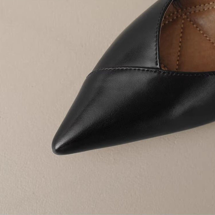 Supple premium leather wraps this sleek pointy-toe pump, exuding timeless elegance, softly cushioned with a padded insole and gracefully elevated by a delicate kitten heel.