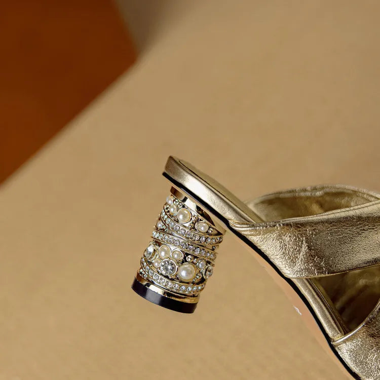 Supple genuine leather in a luxurious metallic finish wraps a couture-ready butterfly pump, set on a jewelled cylindrical heel, perfect for styling your cocktail outfits to red carpet gowns.