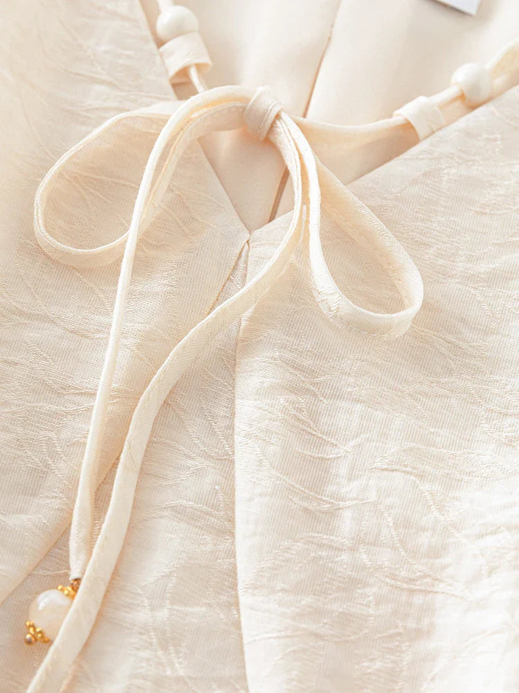 Charming puff sleeves frame this day-to-night long dress designed with a tie-front neckline and a flowing A-line silhouette. Pair it with your favorite heels and statement earrings for a look that's both effortless and chic.