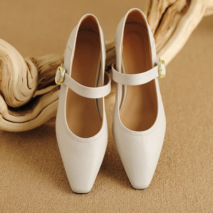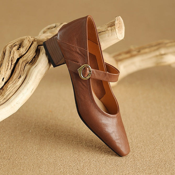 Distressed genuine leather and a perfectly pointed-toe lend graceful charm to these pumps, featuring a buckled mary jane strap and a gently padded insole, great for complementing any outfit.