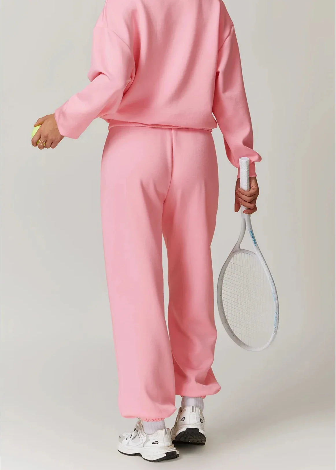 Get into the cozy mode with these soft, flexible oversized joggers featuring a drawstring elastic waist and cuffed ankles, perfect for workouts or lounging.